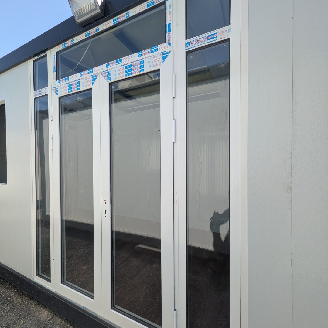 We have several options for windows and doors. Feel free to talk to use about current availability. Large french opening doors, 1800mm sliding doors, full height sliding doors, and single 950mm glass doors.